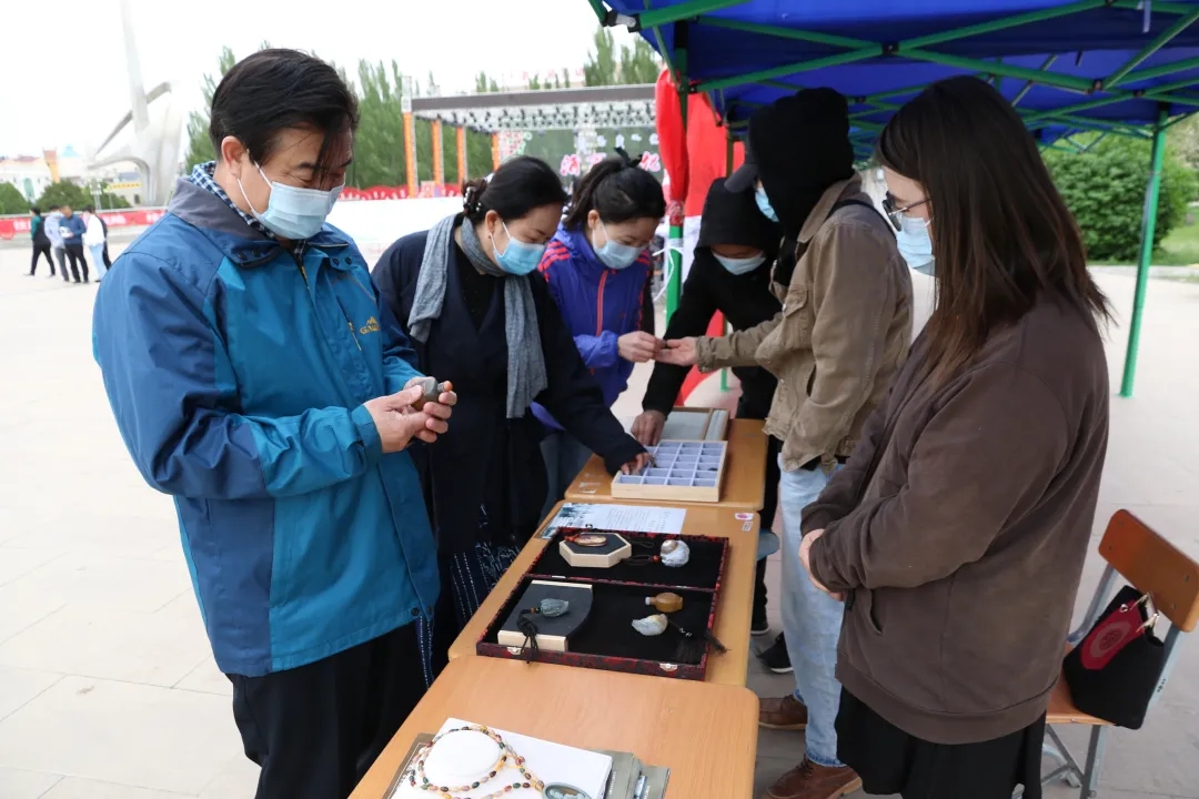 艺术系老师向现场参观人员介绍了我院玉雕专业师生的玉雕作品,每一件展品都展现出俏色巧雕的非凡魅力。