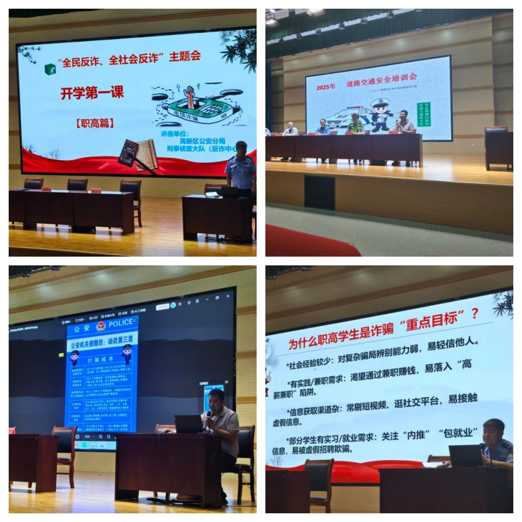 首先,由来自高新区公安分局的民警为新生们带来了交通安全和反诈知识宣传,以及校园霸凌相关问题的讲解。他们以真实案例为切入点,借助图文、视频,直观展示交通事故、诈骗案件和校园霸凌事件的界定标准、严重后果,帮助新生深刻认识遵守交通规则、防范电信诈骗和抵制校园霸凌的重要性。