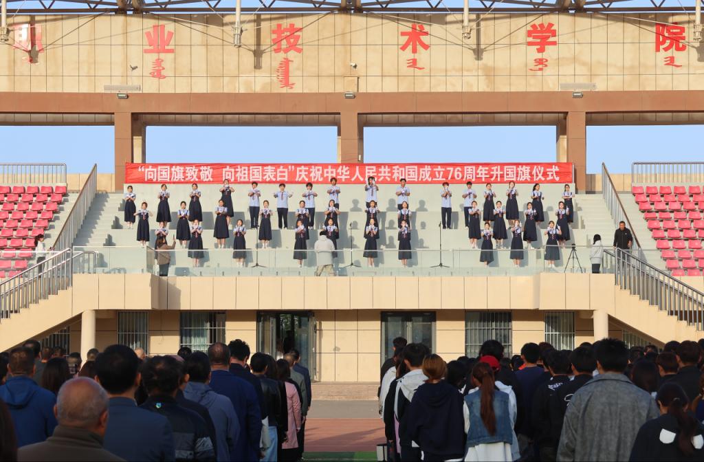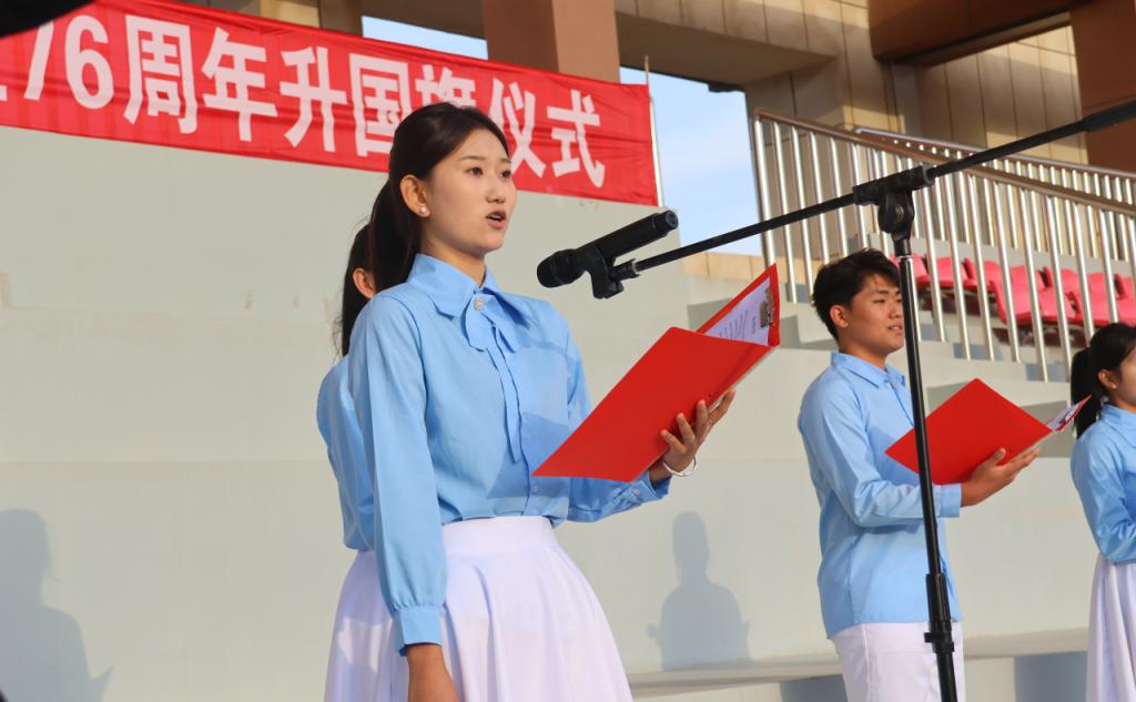 9月29日,我院巴彦浩特校区举行“向国旗致敬、向祖国表白”庆祝中华人民共和国成立76周年升国旗仪式。党委副书记、院长牟献友,在家院领导及全体师生齐聚操场,以最饱满的热情、最崇高的敬意,凝聚起为国家与教育事业发展奋进的磅礴力量。