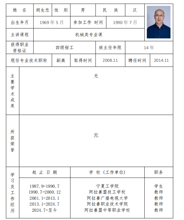 教师简介-胡生忠