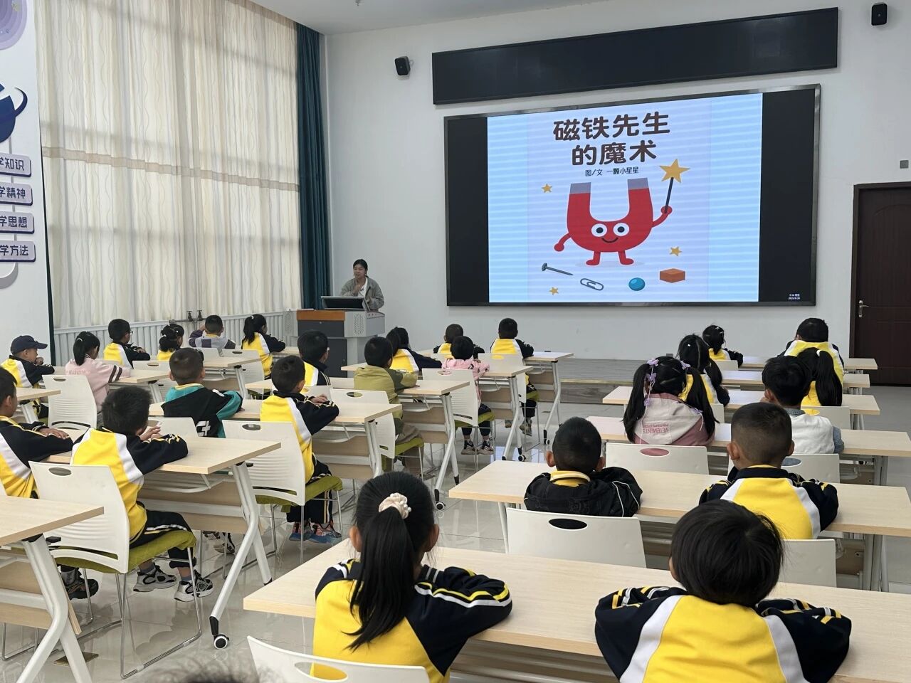 活动现场,针对3-6岁低龄儿童,志愿者们精心选取《你好,大熊猫!》等绘本,运用情景模拟、动物手偶表演等符合幼儿认知特点的教学方法,将科普知识巧妙融入互动游戏,现场气氛热烈,孩子们在欢声笑语中增长了见识。面对7-12岁的青少年,同学们则通过《磁铁先生的魔术》等绘本,配合磁铁实验道具进行现场演示与引导操作,让孩子们在亲手实践中感受物理的奥秘,有效激发了他们的科学探索欲。